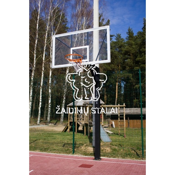 Krepšinio stovas: įbetonuojamas, pagamintas iš plieno profilio, dažytas milteliniu būdu.