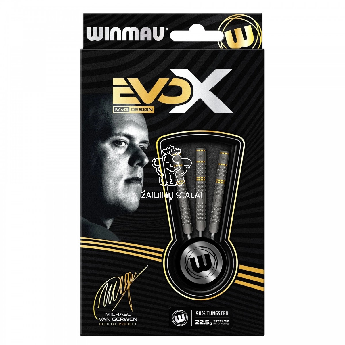 Profesionalios steel tip strėlytės iš Winmau EvoX serijos, sukurtos bendradarbiaujant su Michael van Gerwen. 24 g modelis skirtas žaidėjams, kurie mėgsta sunkesnes strėlytes ir ieško maksimalaus stabilumo metimo metu. Centruotas svorio pasiskirstymas, pilno ilgio „Evo grip“ sukibimo zona ir agresyvus sukibimas suteikia užtikrintą kontrolę bei nuoseklų skrydį žaidžiant su plaušo smiginio lentomis.