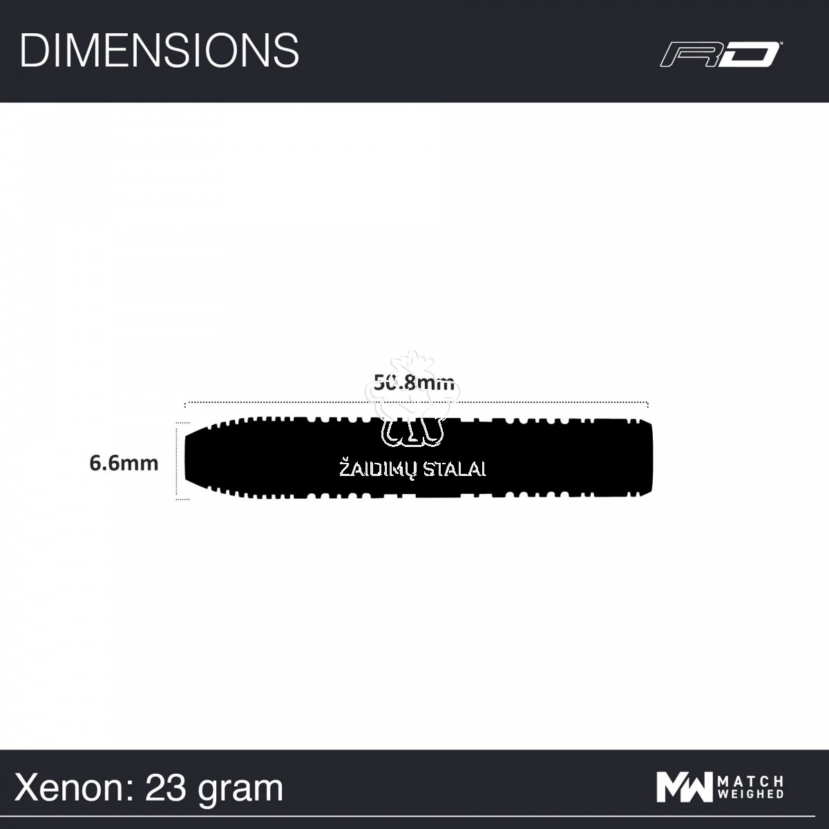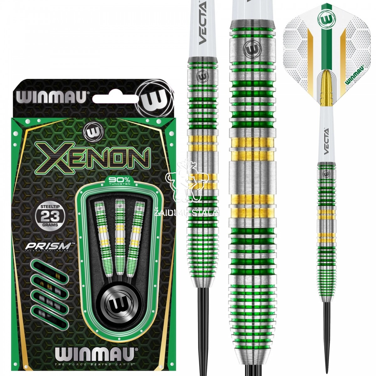 Winmau Xenon strėlytės – klasikinio dizaino 90 % volframo (tungsten) steel tip modelis, pasižymintis penktos kartos ring-grip raštu per visą barrelio ilgį, kuris suteikia natūralų kontrolės pojūtį ir palaiko sklandų metimą. Strėlytės subalansuotos centre, o paralelinis barrelio profilis su trumpesniu priekiu padeda užtikrinti stabilumą skriejant ir patikimą trajektoriją. Šios strėlytės tinka tiek treniruotėms, tiek varžyboms.