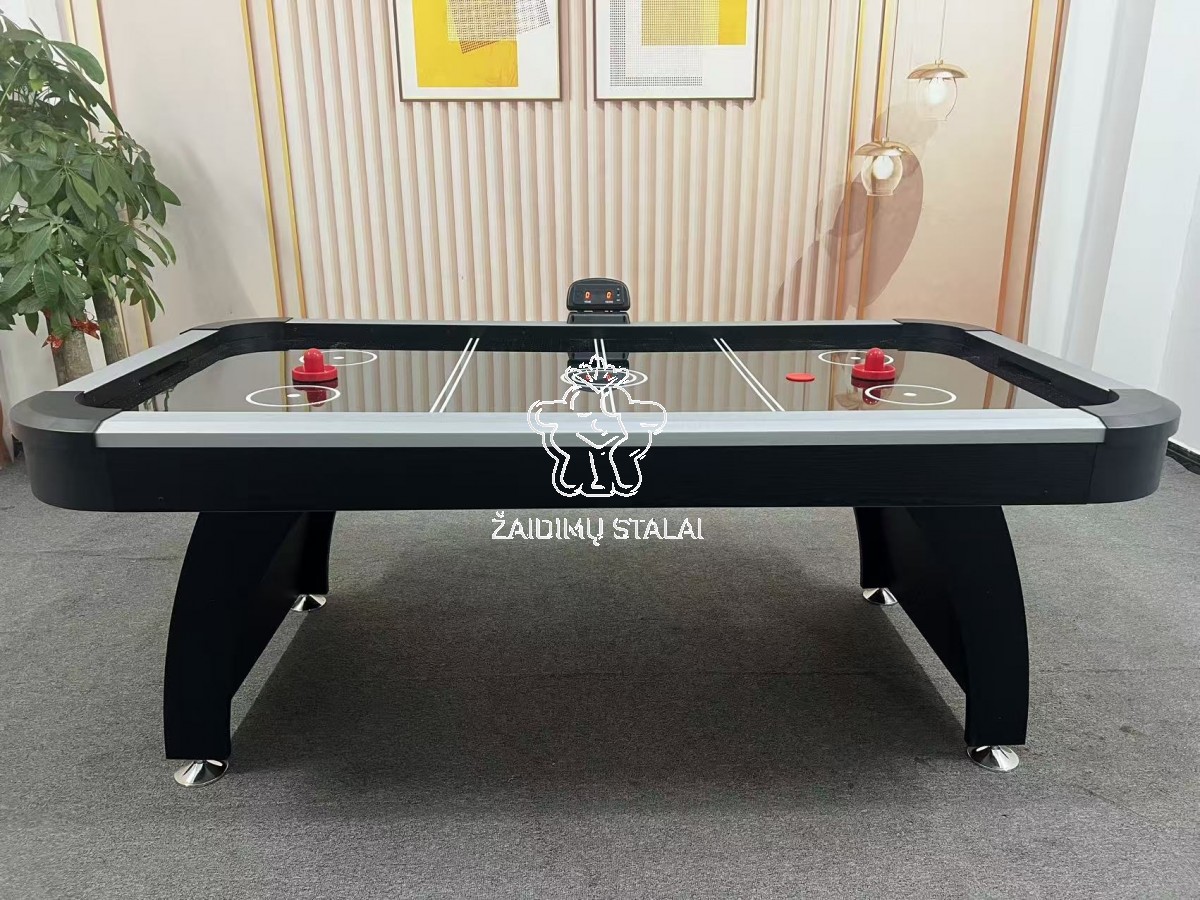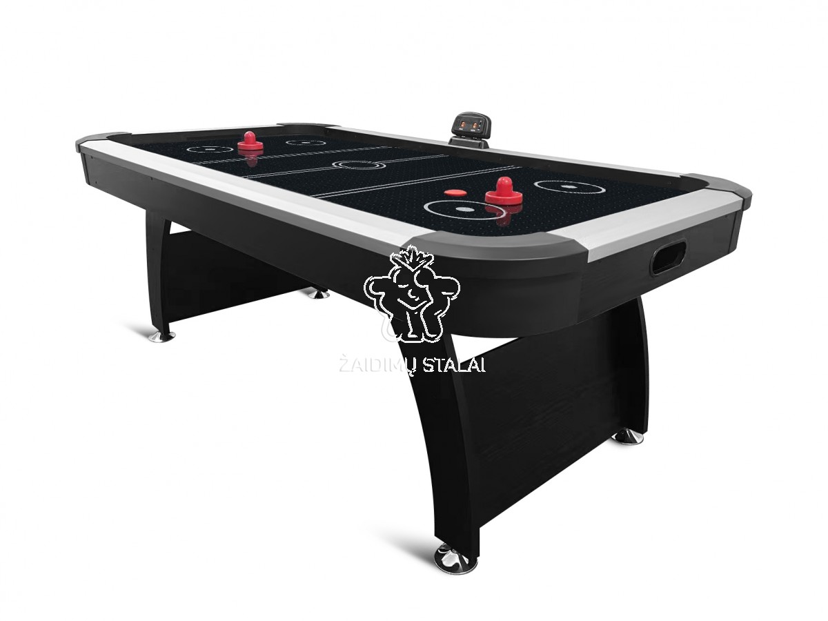 Per žaidimo aikštelėje esančias mikro skylutes kompresorius pučia orą, todėl ritulys lengvai ir tolygiai slysta paviršiumi. Veikia su 220 V maitinimu.