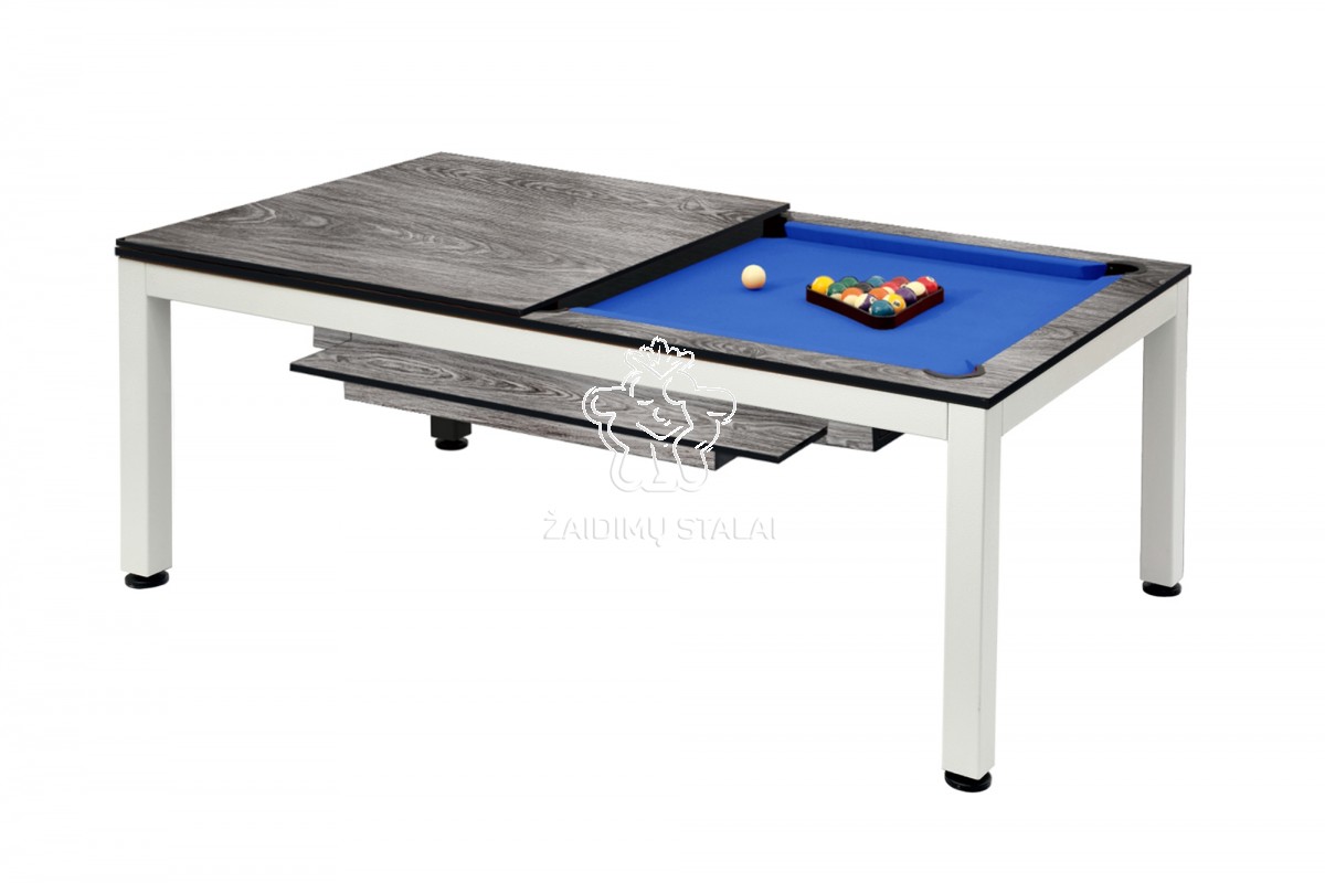 Give yourself and your loved ones a special treat. This modern multifunctional table is easily transformed from a dinner-table with space for up to 12 people to an exquisite billiard pool table. The stylish design makes it a good fit as a conference table as well.