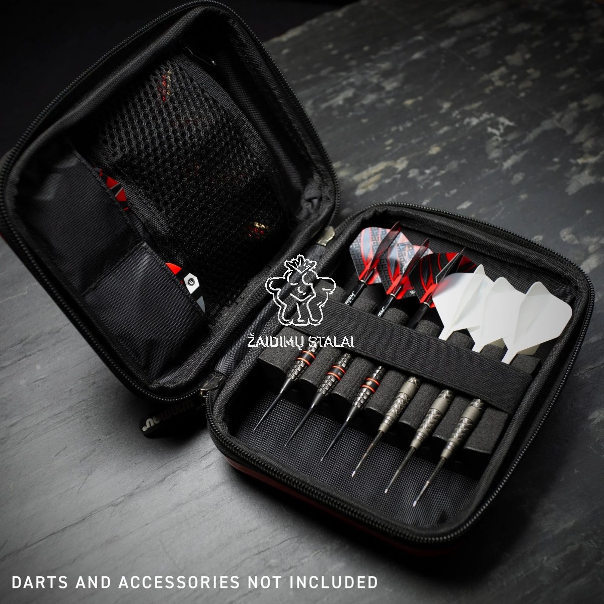 Patogus sprendimas žaidėjams, kurie nori turėti **saugų, kompaktišką ir gerai organizuotą dėklą** vienam pilnam strėlyčių rinkiniui bei reikalingiems priedams – idealus pasirinkimas kelionėms į varžybas ar treniruotes. :contentReference[oaicite:0]{index=0}