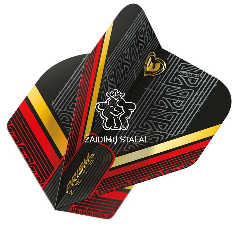 Winmau Prism Zeta Black / Red / Gold – aukštos kokybės standartinio dydžio smiginio strėlyčių sparneliai trijų spalvų deriniu: juoda, raudona ir aukso. Sparneliai pasižymi geru stabilumu skrydžio metu ir tvirta konstrukcija, suteikiančia patikimą kontrolę metimo metu bei išskirtinį vizualinį akcentą jūsų komplektui.