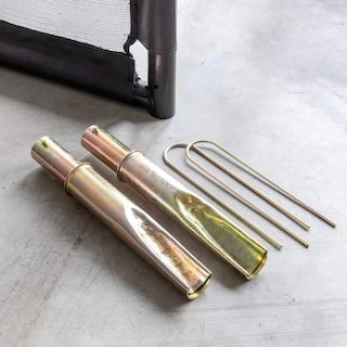 Futbolo vartai komplektuojami su 4 įtvirtinimo kuoliukais, leidžiančiais saugiai pritvirtinti vartus prie žemės. Tokiu būdu vartai išlieka stabilūs net esant prastesnėms oro sąlygoms. Kuoliukus galima lengvai išimti, pavyzdžiui, pjaunant veją, o po to vartus vėl paprastai ir saugiai pritvirtinti.