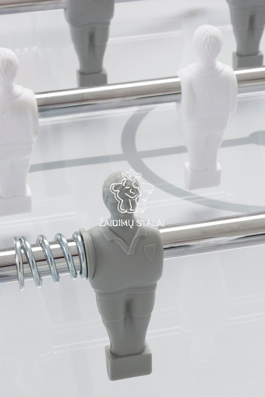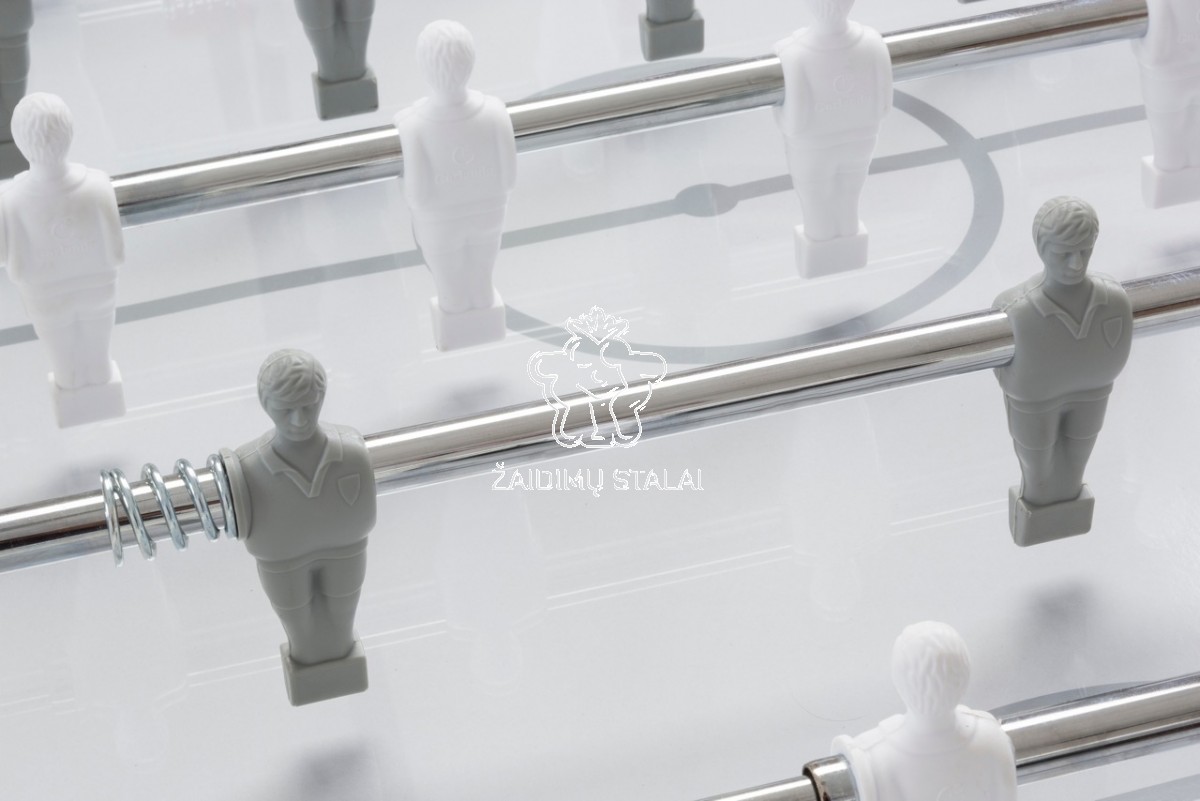 Vienspalviai žaidėjai, pagaminti iš patvaraus plastiko (mopleno), užlieti tiesiai ant strypo. Nejuda, nepersikelia ir išlaiko padėtį. Komandų spalvos: balta ir pilka