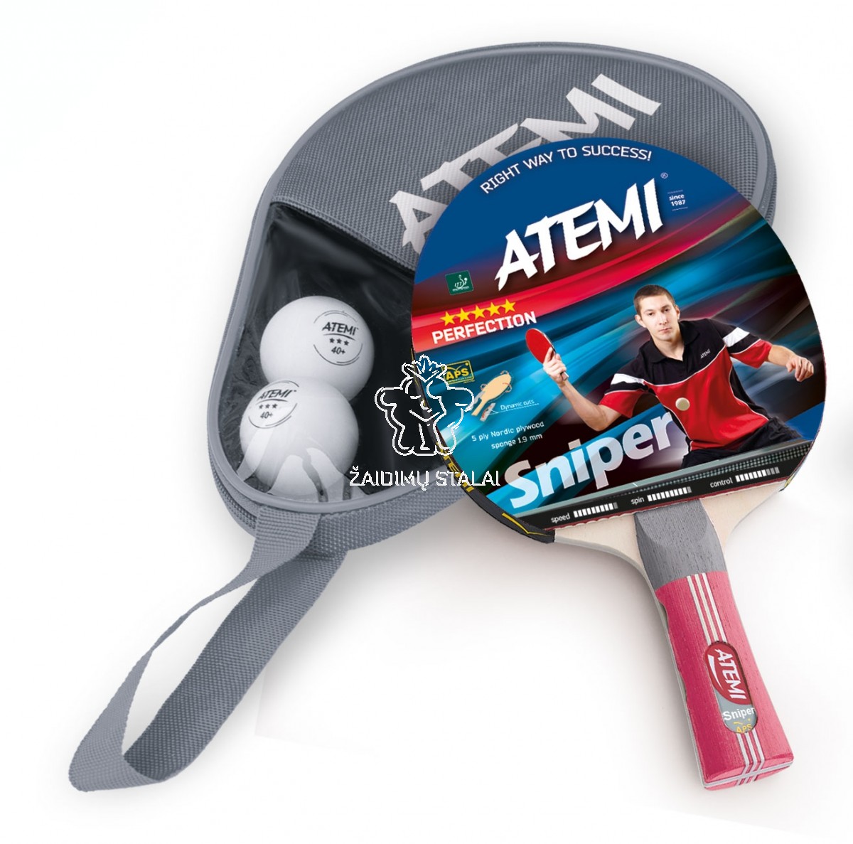 Stalo teniso rinkinys Atemi Sniper, 1 raketė + dėklas + 3 kamuoliukai